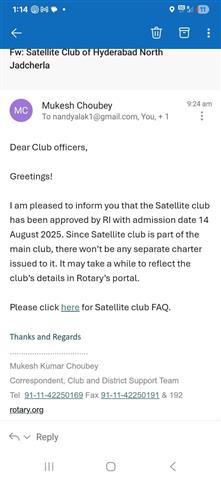 The Satellite Club of Jadcherla has been officially approved by Rot. . .