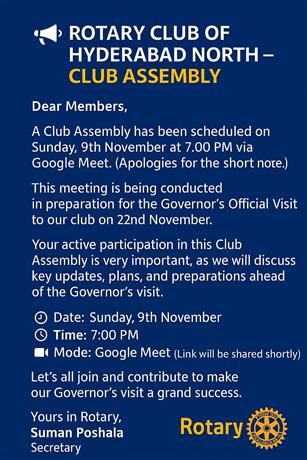 The Rotary Club of Hyderabad North conducted its first Club Assembl. . .